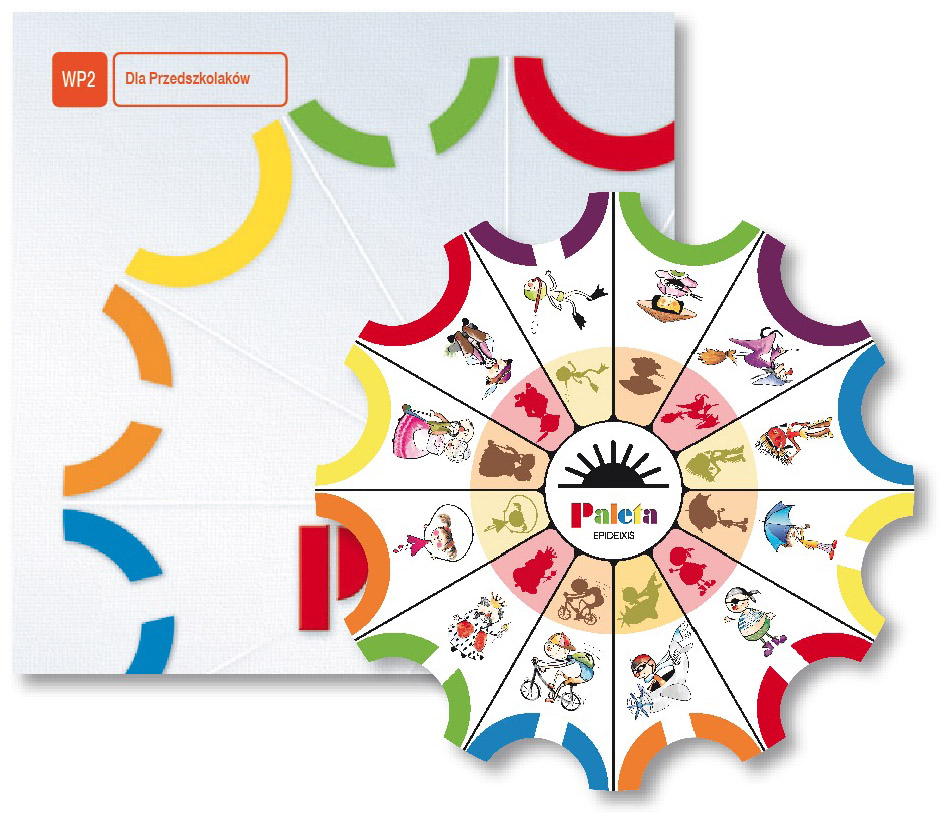 Tarcze WP2 to komplet 12 tarcz ćwiczeń ze zbiorem zabaw ogólnorozwojowych w formie obrazkowej, przystosowanych do możliwości percepcyjnych dziecka od 4 lat: