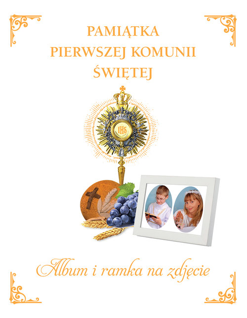 Doskonały prezent na pamiątkę I Komunii Świętej Książka z cytatami z Ewangelii oraz miejscem do wpisania życzeń od najbliższych. Do książki dołączona jest ozdobna ramka na zdjęcie.