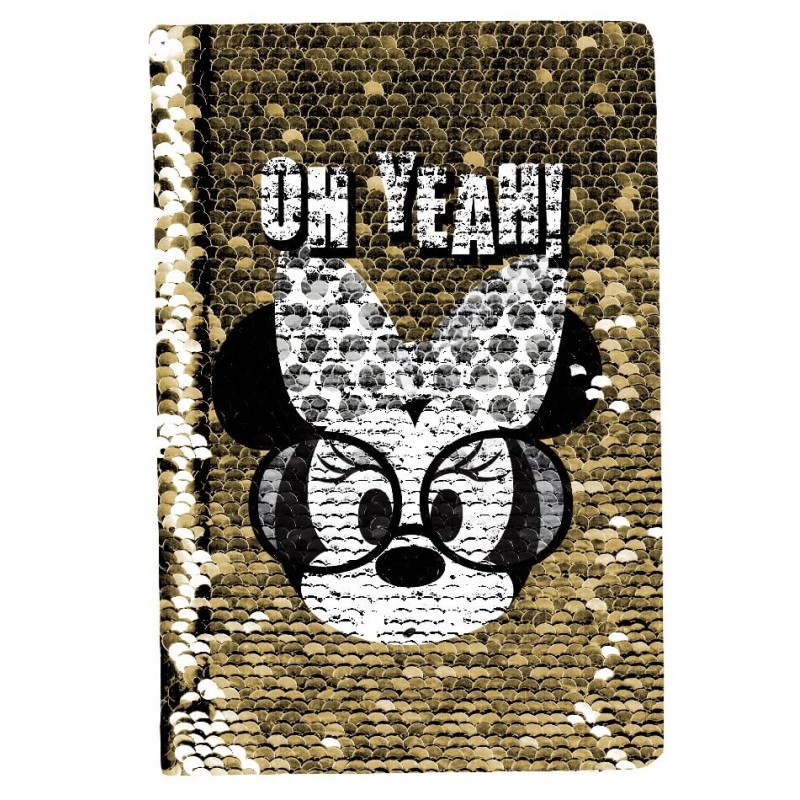Pamiętnik Minnie cekinowy dwustronny. Rozmiar A5, 70 kartek, papier 70 g, 1-kolorowy zadruk wewnętrzny.