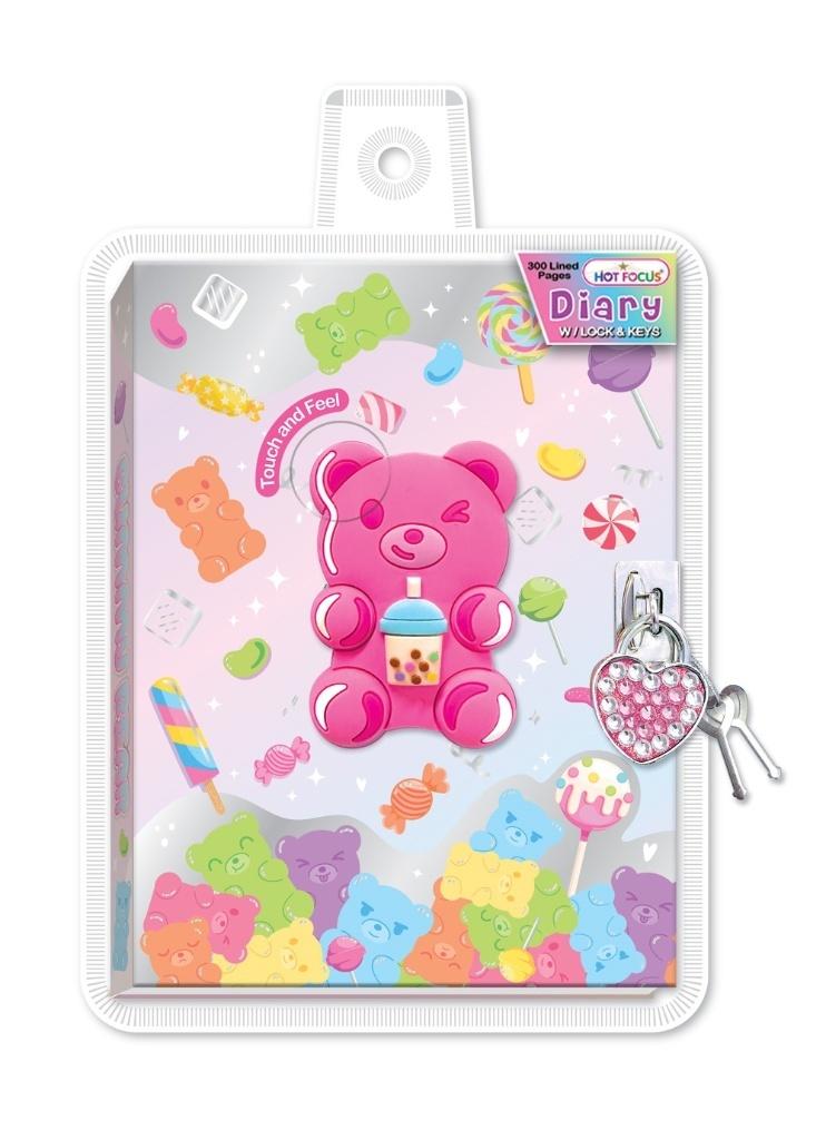 Gruby pamiętnik zamykany na kłódkę w okładce z ozdobami 3D. 150 dwustronnych kartek w linie. W zestawie 2 kluczyki do kłódeczki. Wiek: 5+