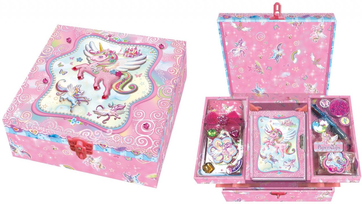 Pamiętnik z akcesoriami w pudełku z półkami Jednorożec