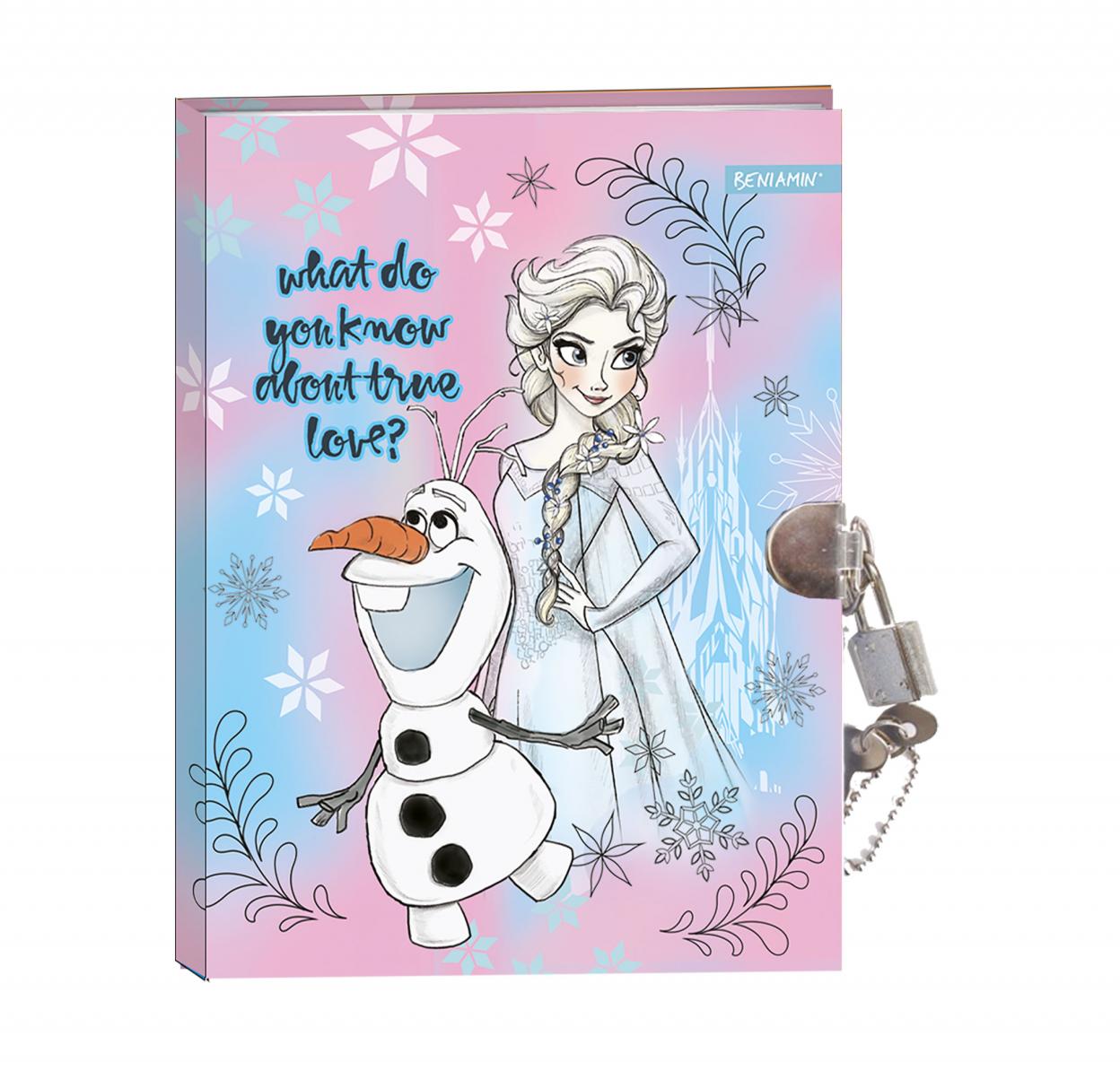 Pamiętnik z motywem bajki Kraina Lodu, zamykany na kłódkę.