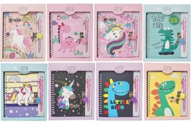 Odkryj magiczny świat Liefde dzięki naszym pamiętnikom z kłódką! Każdy zestaw to zaproszenie do świata kreatywności i tajemnic. Idealne dla dzieci, które uwielbiają pisać, rysować i przechowywać swoje najskrytsze myśli w bezpiecznym miejscu. Oferujemy szeroki wybór wzorów, od fantastycznych jednorożców w tęczowych barwach po przyjazne dinozaury w zabawnych sceneriach. Każdy pamiętnik zawiera stylowy długopis oraz kłódkę z kluczykami, zapewniając pełną prywatność. To doskonały prezent, który rozwija wyobraźnię i zachęca do pisania!