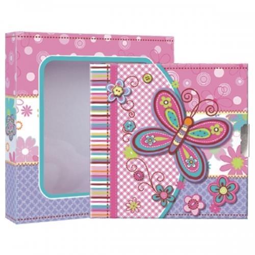 Pamiętnik zamykany Butterfy&Flowers ozdobiony grafiką motyli. Wyposażony w zamek i 2 kluczyki. W zestawie z pudełkiem prezentowym zamykanym na magnes.