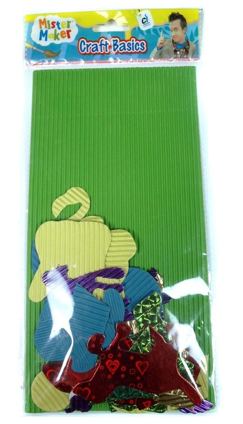 - różnokolorowe kształty wycięte z tektury falistej oraz papieru holograficznego