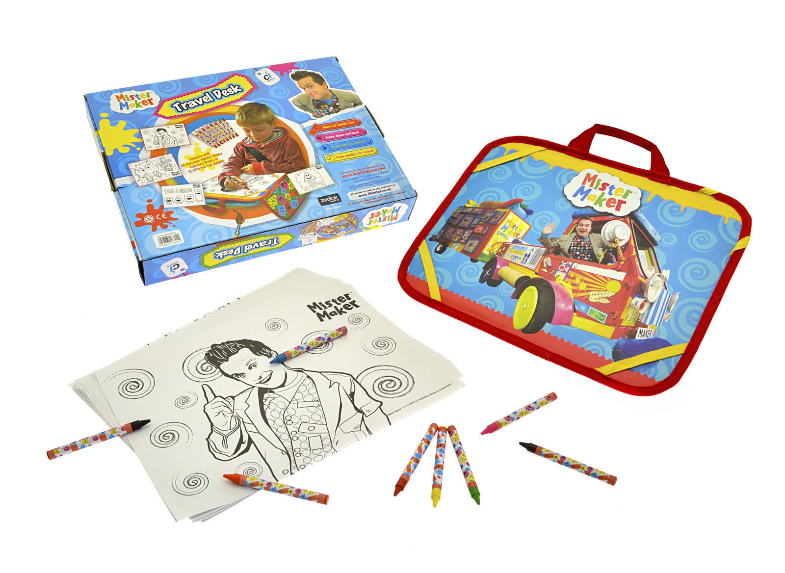 Zestaw Podróżny do rysowania Pana Robótki - idealny dla młodych artystów w podróży! Podkładka dopasowana do kolan dziecka. Gumki na rogach przytrzymują kartki. Podręczny uchwyt, a także boczne mocowania (z piórnikiem) sprawiają, że podkładka staje się podręczną walizeczką.