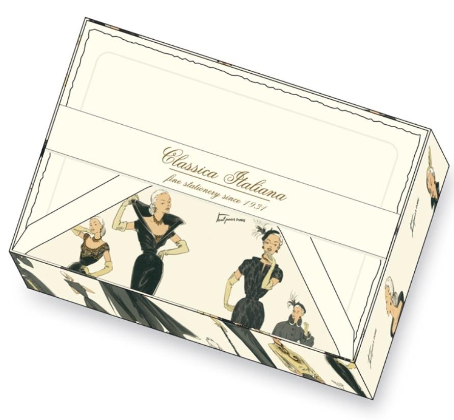 Papeteria w ozdobnym pudełku, papier o gramaturze 240g/m2. W zestawie znajduje się 10 kopert i 10 karnetów. Produkt z ekskluzywnej galanterii wyprodukowany we włoskiej manufakturze.