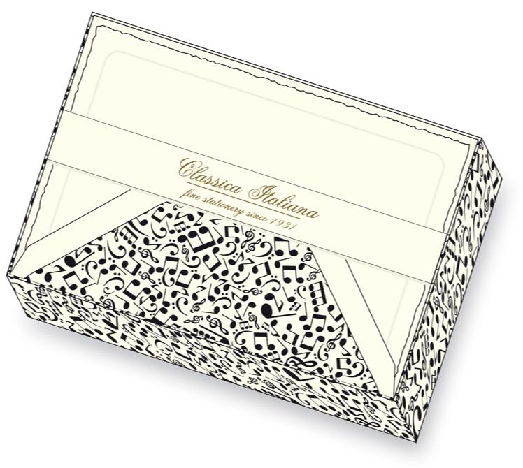 Papeteria w ozdobnym pudełku, papier o gramaturze 240g/m2. W zestawie znajduje się 10 kopert i 10 karnetów.