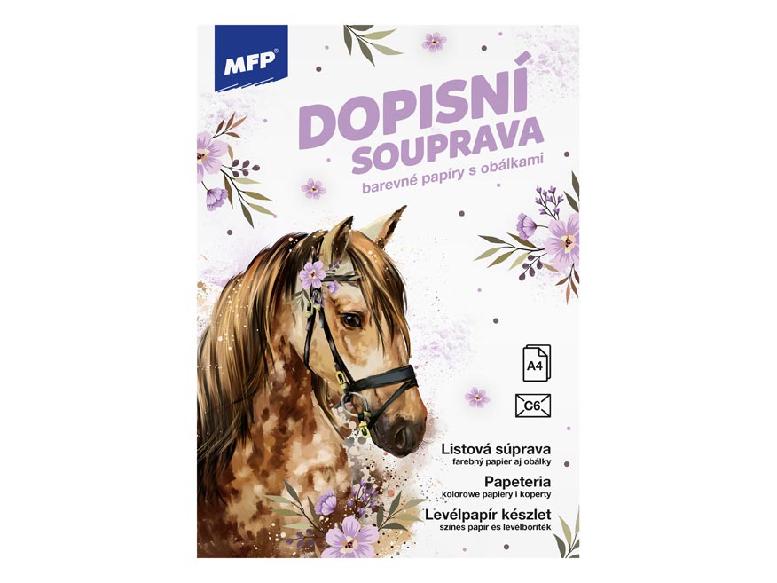 Zestaw papeterii. Zawiera 10 kartek A4 z nadrukiem oraz 5 kopert C6 z nadrukiem. Cały zestaw jest zapakowany w twardą oprawkę z nadrukiem i zafoliowany, posiada również eurozawieszkę.