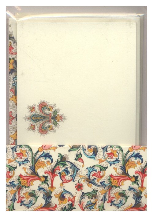 Papeteria w opakowaniu typu Wallet, koperty posiadają zaznaczoną linię, papier o gramaturze 240g/m2. W zestawie znajduje się 6 kopert i 6 karnetów. Produkt z ekskluzywnej galanterii wyprodukowany we włoskiej manufakturze.