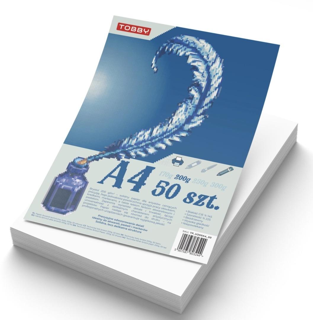 Papier brystol 200 g/m2 A4 - 50 ark. Ilośc arkuszy: 50 ark. Gramatura: 200 g/m2 Kolor: biały Struktura: techniczny Format: A4 (210 x 297 mm) Papier techniczny brystol 200g A4 50 ark. do akwareli pasteli markerów Liczba sztuk w ofercie 1 szt. Papier techniczny brystol 200g A4 50 ark. do akwareli pasteli markerów EAN (GTIN) 5907587803244 Biały papier techniczny A4 Solidny papier dla artystów ceniących precyzję - jego jedwabista powierzchnia sprzyja pracy ołówkiem, kredkami, markerami, a także lekkim farbom akwarelowym i pastelom. Zapewnia wyraziste detale i trwałość, łącząc uniwersalność z delikatnym charakterem artystycznych projektów. . Papier techniczny brystol 200g A4 50 ark. do akwareli pasteli markerów Liczba sztuk w ofercie 1 szt. Papier techniczny brystol 200g A4 50 ark. do akwareli pasteli markerów Kod producenta TP_U200A4_50 Najważniejsze cechy Wysoka jakość powierzchni - szorstkość 225% oznacza optymalną przyczepność dla ołówka, cienkopisów i kredek, dzięki czemu rysowanie jest płynne i precyzyjne. Papier bezdrzewny - wykonany z oczyszczonej celulozy, charakteryzuje się trwałością i odpornością na żółknięcie. Idealny do archiwizacji, szkiców oraz projektów, które mają przetrwać lata. Wysoka gładkość - idealna pod wydruki o wysokiej rozdzielczości oraz techniki suche, zapewnia estetyczny wygląd i czyste linie. Niepowlekany - naturalna struktura papieru bez chemicznych powłok sprawia, że jest przyjazny dla środowiska i doskonale przyjmuje różne media rysunkowe. Papier techniczny brystol 200g A4 50 ark. do akwareli pasteli markerów Liczba sztuk w ofercie 1 szt. Papier techniczny brystol 200g A4 50 ark. do akwareli pasteli markerów Seria inna Nadaje się również do druku Nasz papier techniczny jest idealny do codziennych zastosowań - drukowania i kserowania Gwarantuje czyste i precyzyjne wydruki Doskonały wybór dla tych, którzy poszukują niezawodności i wyrazistości w codziennym użytkowaniu
