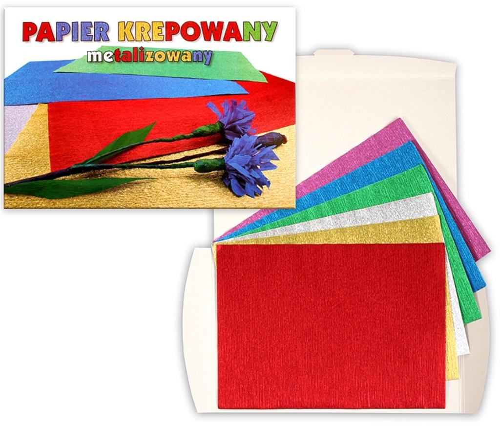Papier metalizowany krepowany w 6 kolorach, o wymiarach 229x324 mm. Idealny na lekcje plastyki.