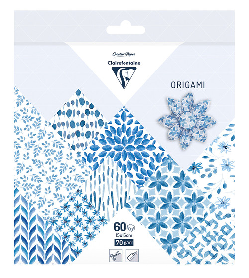 Papier ORIGAMI, 60 ark. (jedna strona zadrukowana, druga gładka) 70g/m?, 15x15cm - 30 różnych wzorów powtórzonych dwukrotnie - Shibori floral