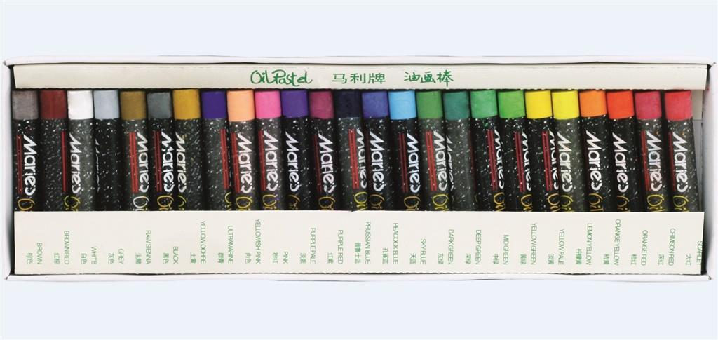 przekrój okrągły umożliwiają płynne, gładkie rysowanie kredki są wytrzymałe niełatwo je złamać kolory można nakładać na siebie i korygować, używając terpentyny jako rozpuszczalnika obrazy są trwałe i odporne na światło 25 kolorów