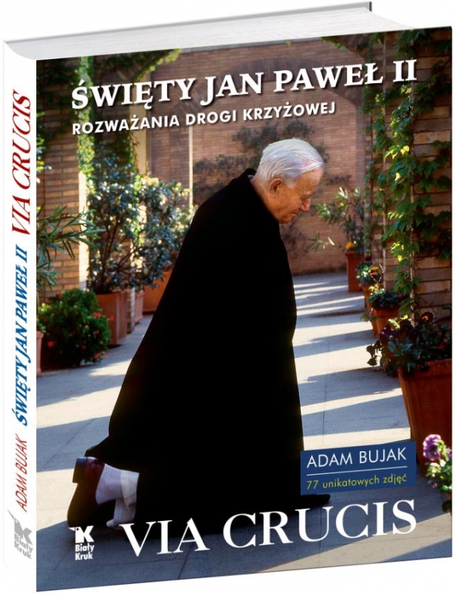 Mało kto wie, że Ojciec Święty Jan Paweł II niemal co piątek odprawiał nabożeństwo Drogi Krzyżowej na... dachu Pałacu Apostolskiego. Znajduje się tam 14 stacji wykonanych na polecenie Pawła VI. Nikt tam nie fotografował naszego papieża - poza Adamem Bujakiem, który został tam raz dopuszczony - w 1987 r. Nic tak nie oddaje głębi wiary przyszłego Świętego, jak wspomnienie odprawianej przez Niego prywatnie modlitwy Drogi Krzyżowej; jest to wspomnienie przejmujące. Zdjęcia oddają pełnię dramatu, jaki przeżywał Jan Paweł II krocząc w rozmodleniu od stacji do stacji; artysta utrwalił na Jego twarzy cierpienie, zdaje się On osobiście uczestniczyć w Męce Chrystusa. Tylko przy tej okazji można było zobaczyć papieża ubranego na czarno - celowo, by nie mógł stać się łatwym celem dla snajperów... W przededniu kanonizacji Jana Pawła II czytelnicy otrzymują całkowicie unikatową książkę składającą się ponadto z wielu innych nie publikowanych zdjęć polskiego Papieża z okresu Triduum Paschalnego. ,,Via Crucis"" to jednak dzieło nie tylko artysty fotografika, ale w jeszcze większym stopniu samego Jana Pawła II, którego krótkie, ale jakże głębokie i poruszające rozważania Drogi Krzyżowej znajdują się także na kartach tej książki. Zachowały się teksty dwóch Dróg Krzyżowych autorstwa Karola Wojtyły - Jana Pawła II; jedna z roku 1976, druga z 2000. Obie znalazły się w ,,Via Crucis"". Premiera książki przypada na początek Wielkiego Postu i poprzedza 9. rocznicę śmierci polskiego Papieża.