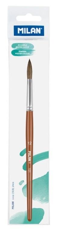 Szkolny okrągły pędzel serii 101 nr 12 z krótkim drewnianym trzonkiem.