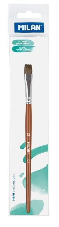 Szkolny płaski pędzel serii 121 nr 12 z krótkim drewnianym trzonkiem.