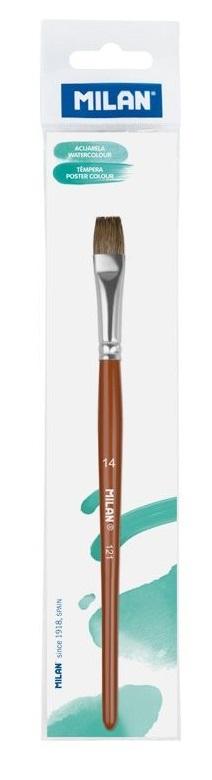 Szkolny płaski pędzel serii 121 nr 14 z krótkim drewnianym trzonkiem.