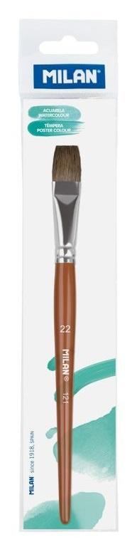Szkolny płaski pędzel serii 121 nr 22 z krótkim drewnianym trzonkiem.