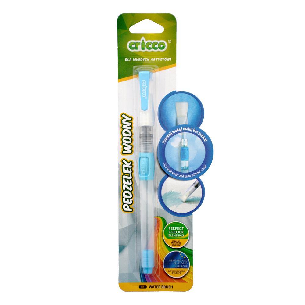 Pędzelek wodny (Water Brush) znajdzie zastosowanie zarówno przy malowaniu farbami wodnymi jak i kredkami akwarelowymi czy pastelami. Posiada końcówkę wykonaną z miękkiego, syntetycznego włosia co pozwala na delikatne i dokładne prowadzenie linii. Pędzelek ma duży - 8ml zbiorniczek na wodę, dzięki czemu można go wykorzystać nie tylko w domu, ale również przy malowaniu w plenerze. Dodatkową zaletą jest specjalny dozownik pozwalający na rozprowadzenie odpowiedniej ilości wody. Produkt dostępny jest w dwóch wariantach: z cienką okrągłą końcówką, oraz średnią płaską w rozmiarze M.