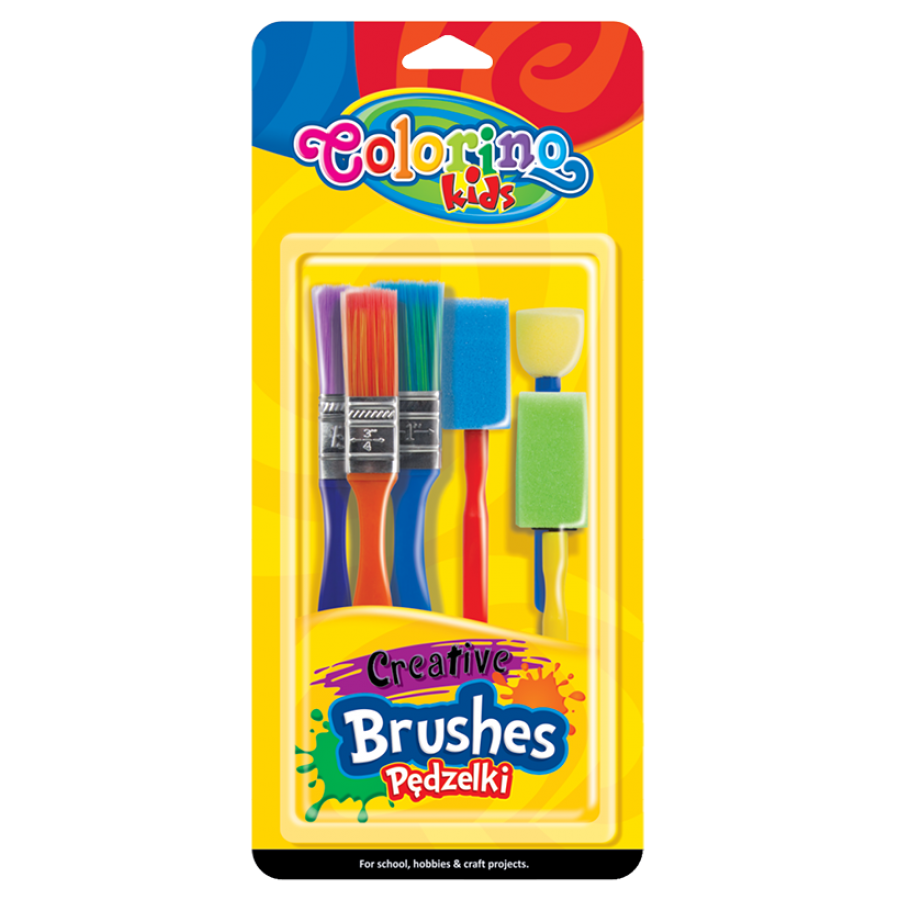 Zestaw 6 kolorowych pędzli kreatywnych. Idealne do tworzenia oryginalnych efektów artystycznych. W zestawie 3 szerokie pędzle z włosia oraz 3 pędzle zakończone gąbką.