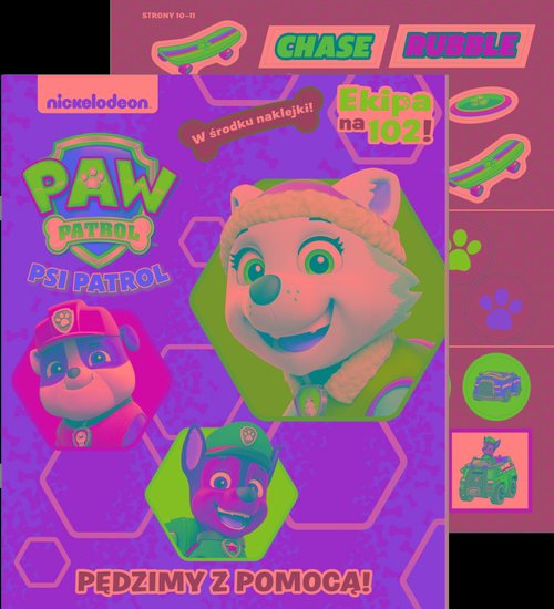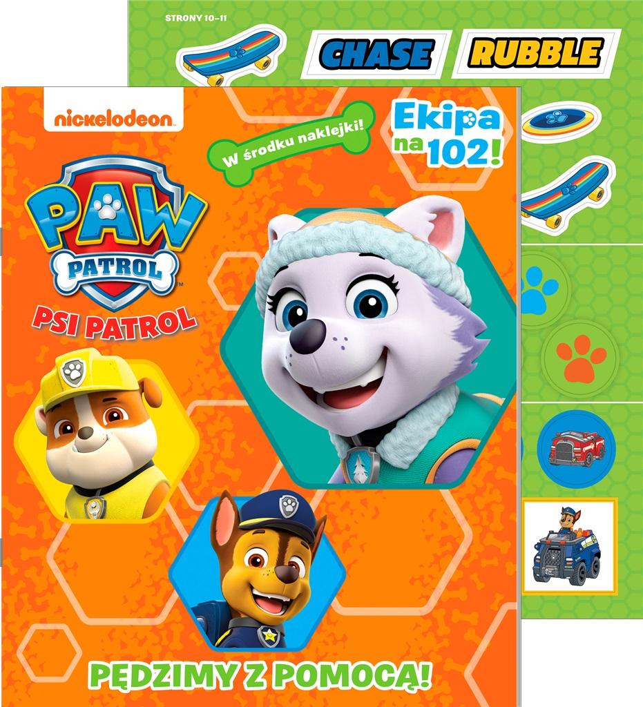 Psi patrol. Ekipa na 102! zawiera zagadki, łamigłówki oraz kolorowanki z ulubionymi bohaterami w roli głównej. W środku również kolorowe naklejki z dzielnymi pieskami! Rezolutne szczenięta Marshall, Rubble, Chase, Rocky, Zuma i Skye oraz dziesięcioletni chłopiec Ryder nigdy nie odmówią pomocy potrzebującym-pomagaj pieskom w ich bohaterskiej misji poprzez rozwiązywanie różnorodnych zadań.