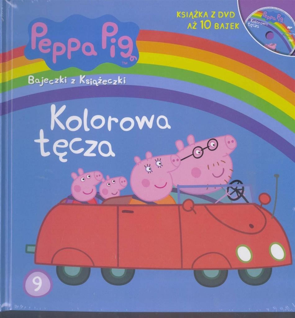 Książka z płytą DVD Aż 10 odcinków z przygodami Peppy: 1) Tecza 2) Księżniczka Peppa 3) Urodziny Danny'ego 4) Kaszel Pedra 5) Miś Teddy 6) Wesołe miasteczko 7) Dziadek na placu zabaw 8) Złota rybka 9) Kurczęta babci świnki 10) Delfina osiołek