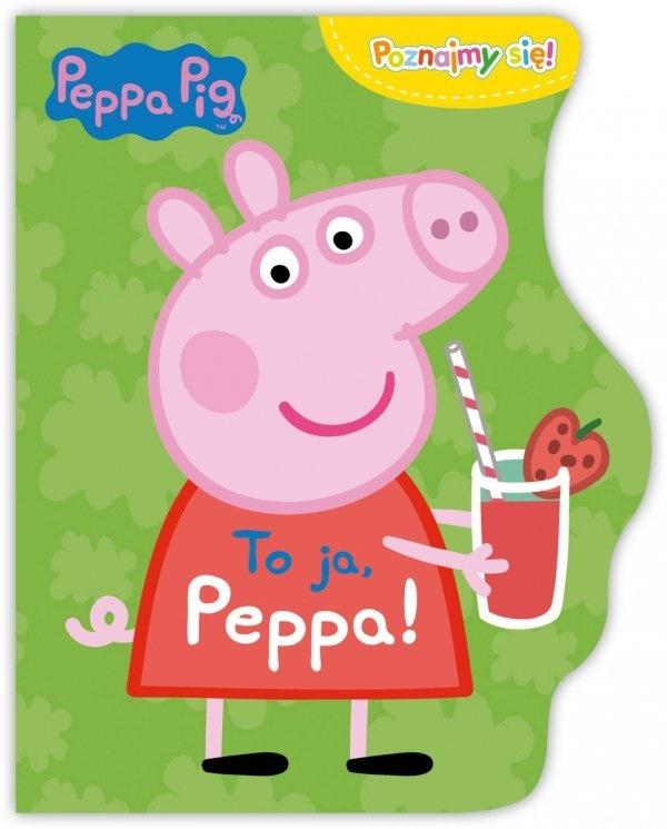 książka twardostronicowa z opowiadaniem w kształcie ulubionej postaci. Cześć jestem Peppa! Zajrzyjcie do tej książki, a pokażę wam mój świat.