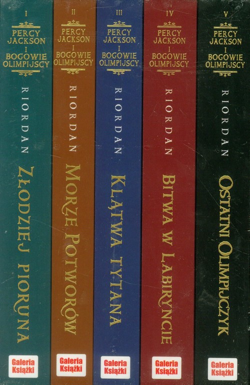 Pięć tomów bestsellerowej serii Percy Jackson i Bogowie Olimpijscy w specjalnie zaprojektowanym pudełku.Złodziej PiorunaMorze PotworówKlątwa TytanaBitwa w LabiryncieOstatni Olimpjczyk