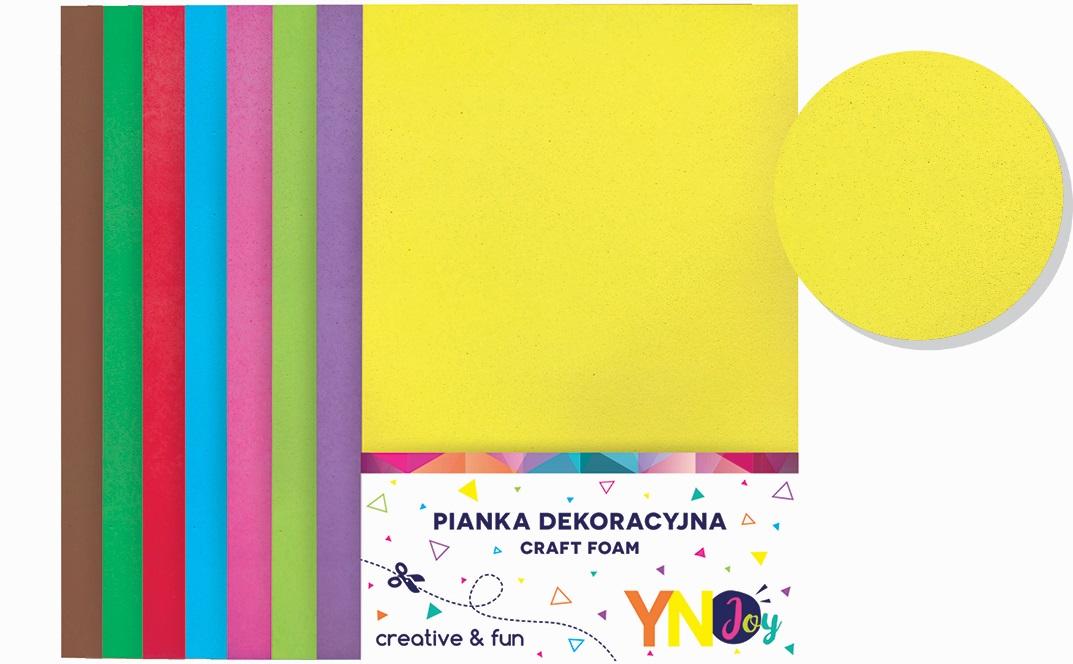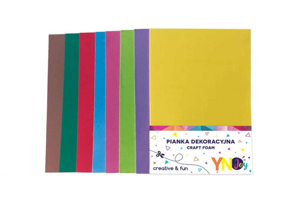 Opakowanie zawiera 8 arkuszy pianek w rozmiarze A4 w intensywnych kolorach.