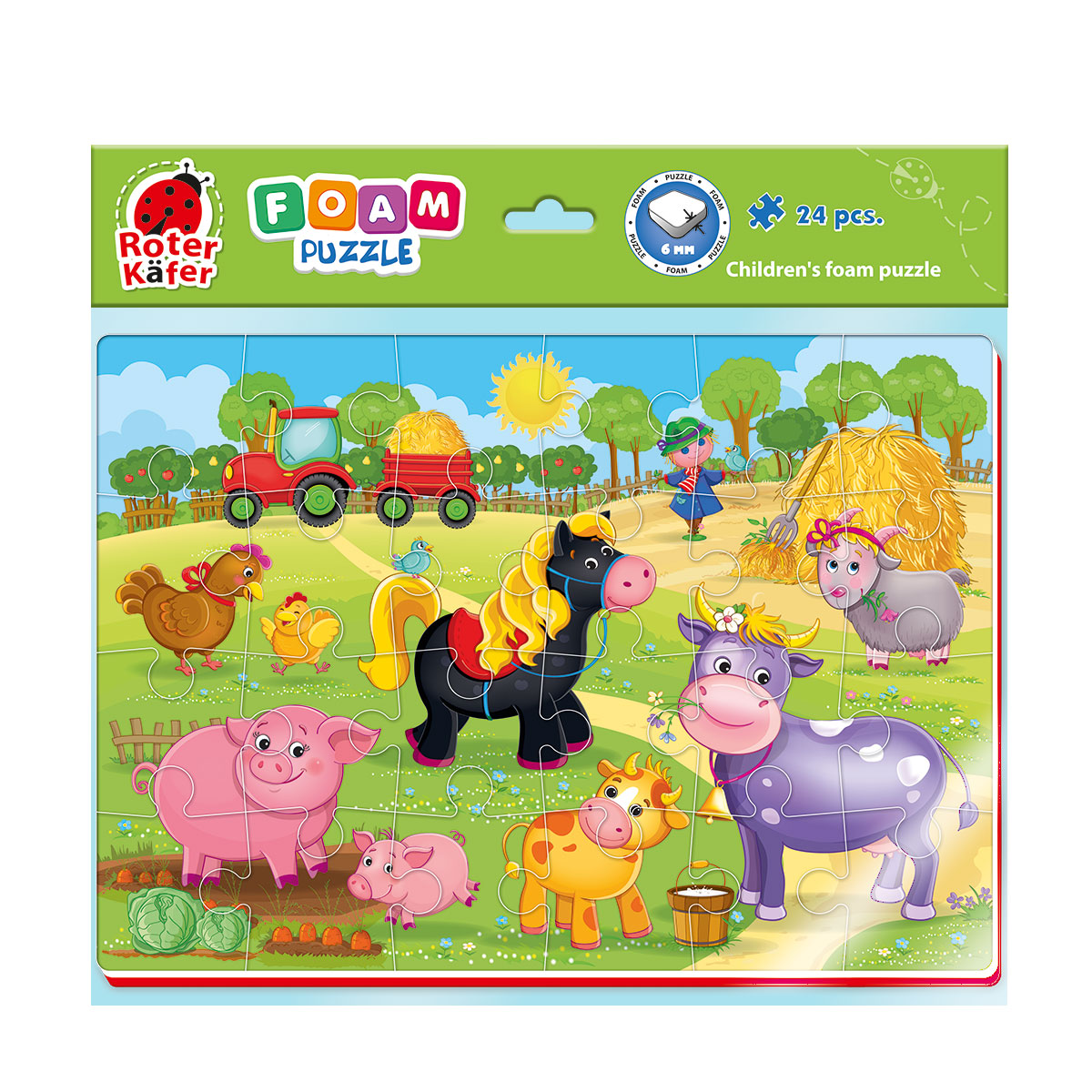 Miękkie puzzle składają się z 24 elementów. Po ułożeniu wszystkich elementów maluch zobaczy gospodarstwo wraz z jego wesołymi mieszkańcami. Żywe obrazki i duże miękkie elementy spodobają się każdemu dziecku. Objętościowe elementy trwale mocują się, a obrazek nie rozsypuje się. Pomóżcie swemu dziecku powiesić obrazek na ścianie w jego pokoju. Ta zabawa puzzlami wprowadza nas w dobry nastrój!