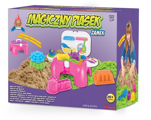 Magiczny piasek to rewolucyjna masa do tworzenia wspaniałych piaskowych rzeźb, mimo mokrej struktury gwarantuje, że dziecięce rączki będą suche, zachwyca od pierwszego dotknięcia i nigdy nie traci właściwości plastycznych (nie wysycha).