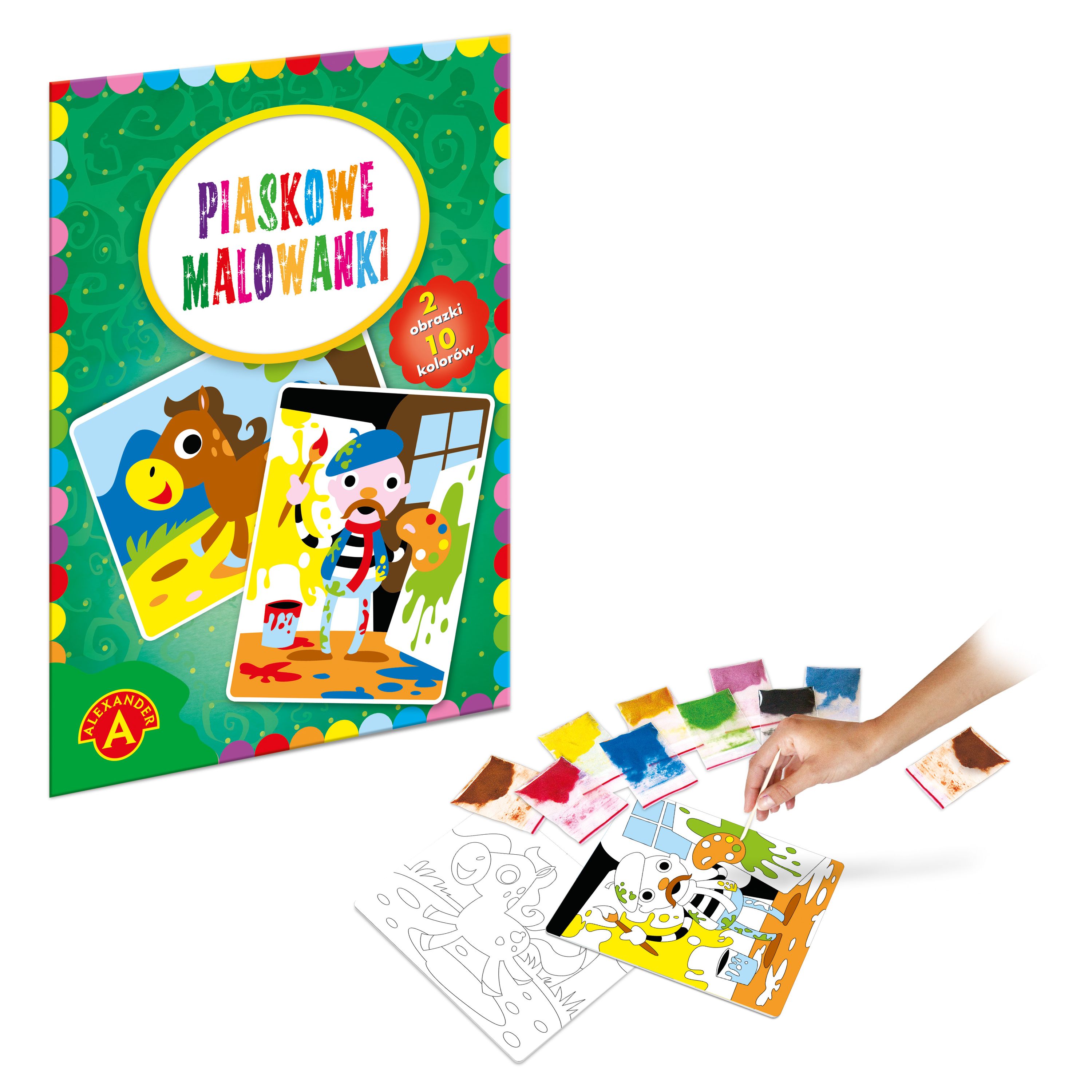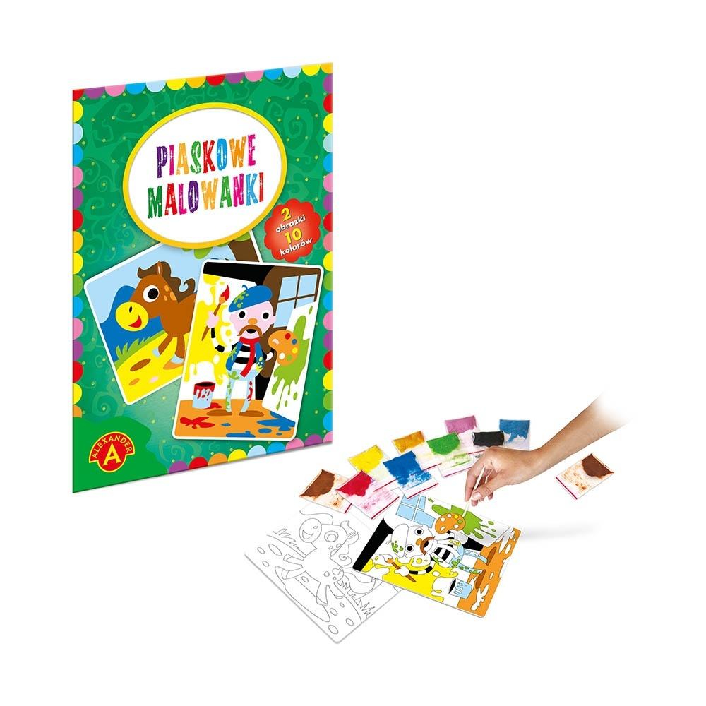 Uwielbiana przez dzieci, artystyczna zabawa malowania piaskiem, polegająca na odsłanianiu kolejno poszczególnych, naciętych elementów obrazka, tak by odkryć klejącą powierzchnię. Odsłonięte elementy posypuje się piaskiem, w kolorze zgodnym ze wzorem lub według własnej wyobraźni, tworząc piękną ilustrację.