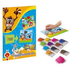 Zostań małym artystą wraz z Bugsem, Tazem i Daffym ! Zabawa polega na odsłanianiu kolejnych, naciętych, elementów obrazka tak, by odkryć klejącą powierzchnię wybranego fragmentu. Następnie posyp go piaskiem w odpowiednim kolorze i gotowe. Twoja własna piaskowa malowanka.