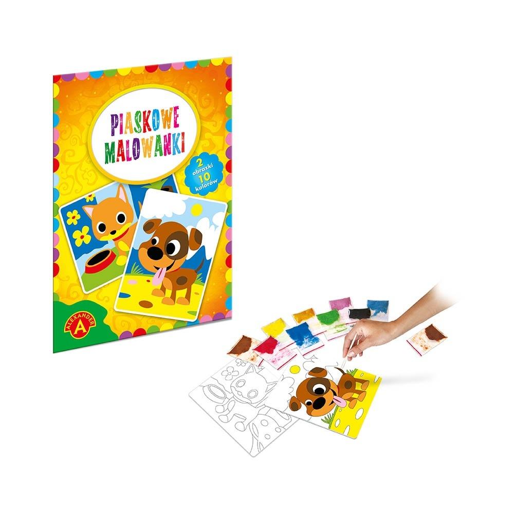Uwielbiana przez dzieci, artystyczna zabawa malowania piaskiem, polegająca na odsłanianiu kolejno poszczególnych, naciętych elementów obrazka, tak by odkryć klejącą powierzchnię. Odsłonięte elementy posypuje się piaskiem, w kolorze zgodnym ze wzorem lub według własnej wyobraźni, tworząc piękną ilustrację.