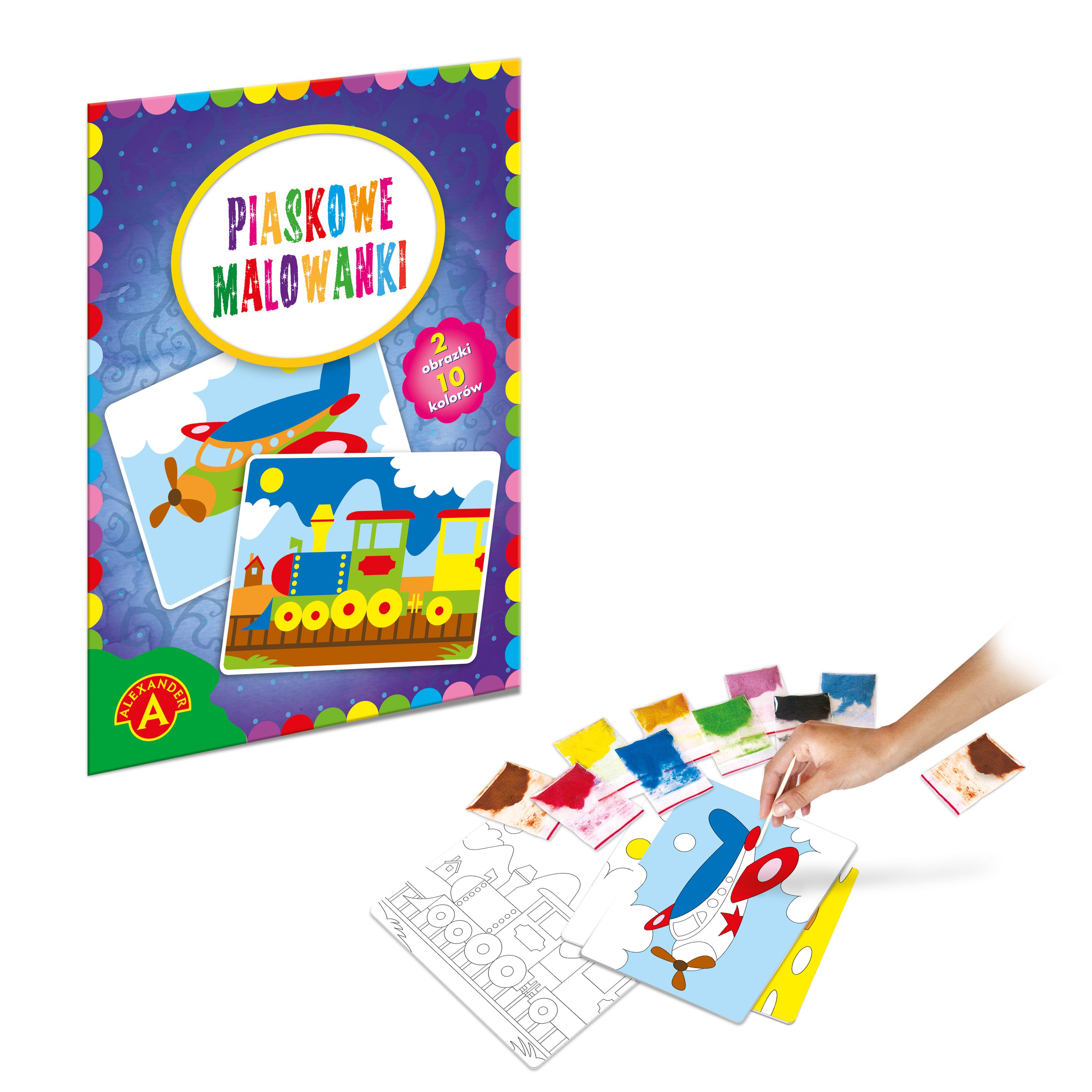 Uwielbiana przez dzieci, artystyczna zabawa malowania piaskiem, polegająca na odsłanianiu kolejno poszczególnych, naciętych elementów obrazka, tak by odkryć klejącą powierzchnię. Odsłonięte elementy posypuje się piaskiem, w kolorze zgodnym ze wzorem lub według własnej wyobraźni, tworząc piękną ilustrację.