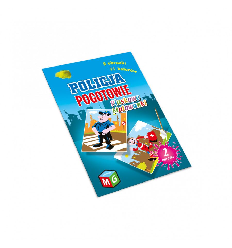 Zawartość pudełka: 2 obrazki do kolorowania, patyczek, 10 woreczków kolorowego piasku, instrukcja