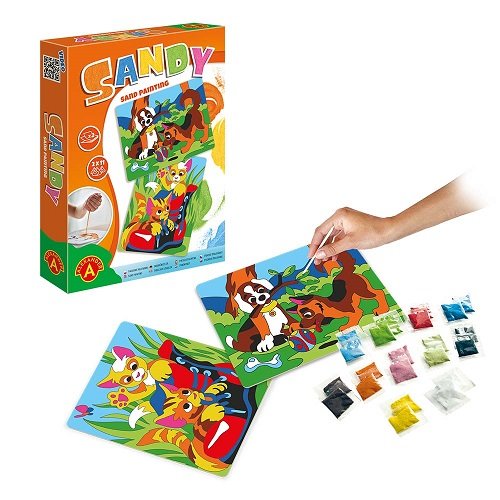 Uwielbiana przez dzieci, artystyczna zabawa malowania piaskiem, polegająca na odsłanianiu kolejno poszczególnych, naciętych elementów obrazka, tak by odkryć klejącą powierzchnię. Odsłonięte elementy posypuje się piaskiem, w kolorze zgodnym ze wzorem lub według własnej wyobraźni, tworząc piękną ilustrację.