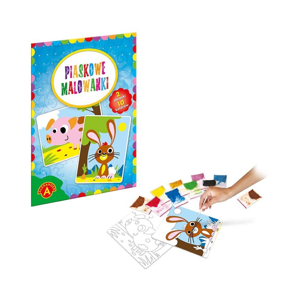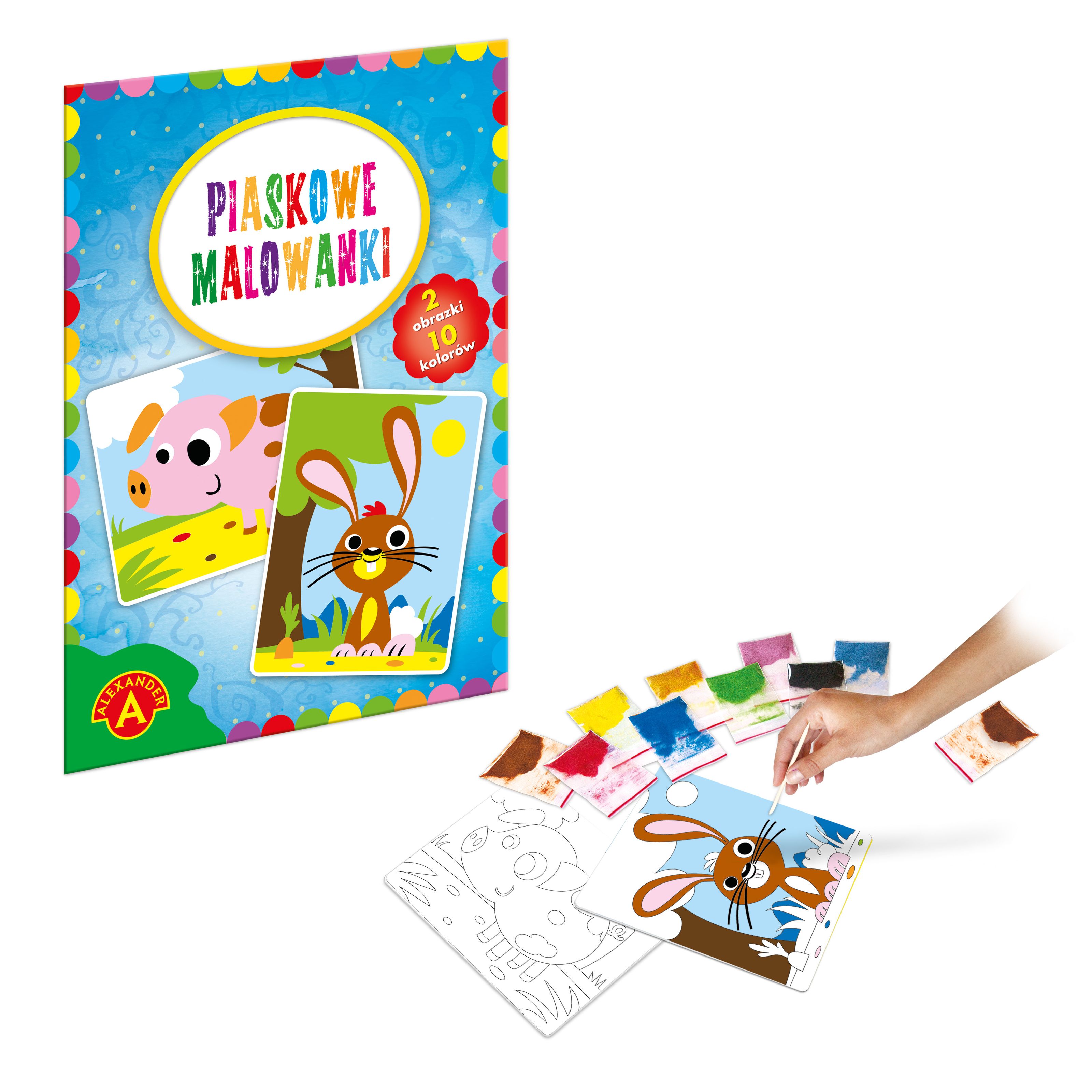 Uwielbiana przez dzieci, artystyczna zabawa malowania piaskiem, polegająca na odsłanianiu kolejno poszczególnych, naciętych elementów obrazka, tak by odkryć klejącą powierzchnię. Odsłonięte elementy posypuje się piaskiem, w kolorze zgodnym ze wzorem lub według własnej wyobraźni, tworząc piękną ilustrację.