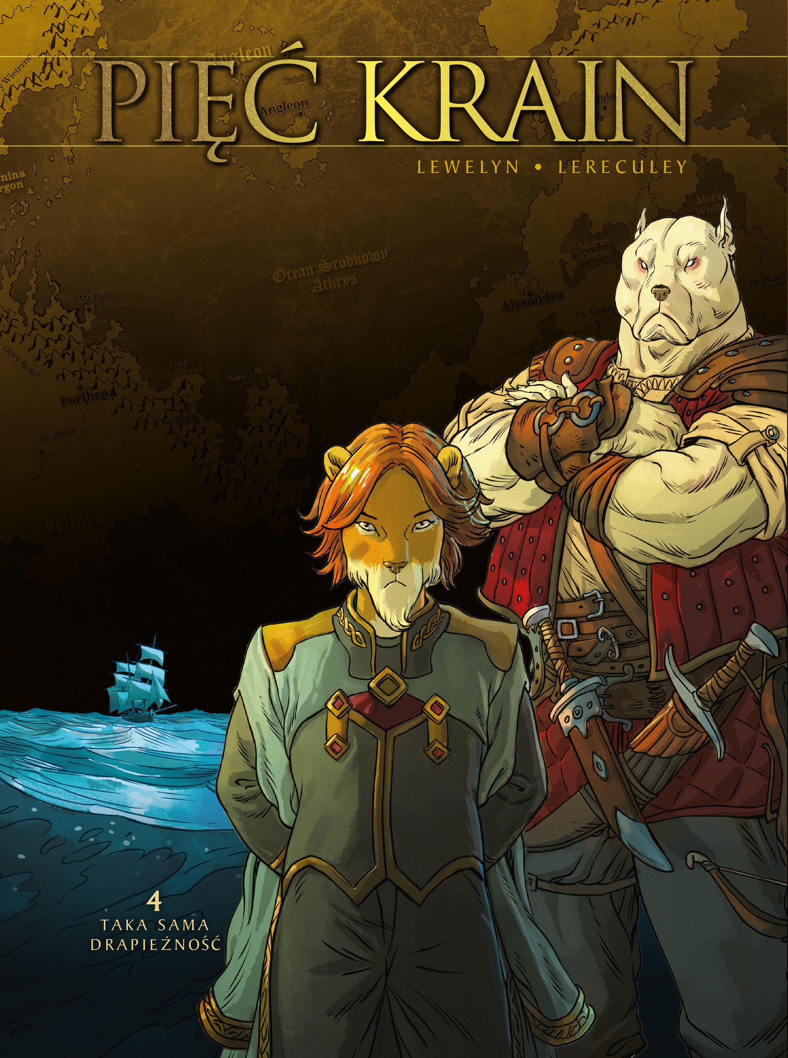 Czwarty tom sagi fantasy porównywanej pod względem rozmachu i dramaturgii wydarzeń ze słynną „Grą o tron”! Tron Angleonu przypada młodemu Mederionowi, który rozpoczyna panowanie od stłumienia buntu lwów i wydania zaskakujących decyzji. Teraz jedni widzą w nim postępowego władcę, inni mają go za bezwzględnego tyrana. Jaka jest prawda? Nie zna jej chyba nawet nowy Cień Króla, lew Terys, a tym bardziej znakomity szermierz This, którego Mederion zatrudnił jako osobistego strażnika. Tymczasem po podziemiach stolicy błąka się grupa uciekinierów, a daleko od Angleonu najemnicy szukają księżniczki Astrelii,. Dlaczego ważnym osobom w państwie zależy na jej odnalezieniu?