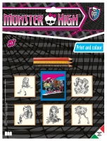 5 pieczątek, 3 kredki, plastikowe pudełko z gąbką nasączoną nietoksycznym tuszem.