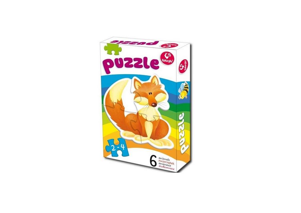 Zwierzątka takie jak żaba, pszczółka są dwuelementowe, pozostałe: trzy i czteroelementowe. Puzzle powinny być używane w miarę postępującego rozwoju możliwości kojarzenia kształtów. Doskonała zabawa edukacyjna dla najmniejszych dzieci. W serii znajdują się również puzzle ze zwierzątkami egzotycznymi oraz pojazdami.