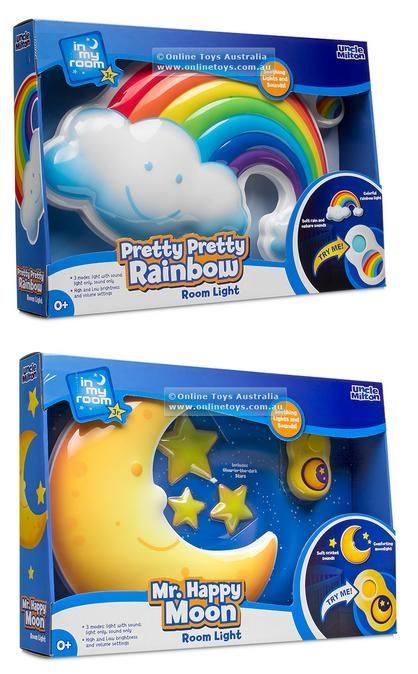 Pierwsze światło w moim domu to jedna z 4 lampek dostępna w wersjach: Wesoły Księżyc, Kolorowa Tęcza, Uśmiechnięte Słoneczko oraz Kosmiczna Rakieta. Rozświetl pokój swojego Maluszka miłym i przyjaznym światłem. Wystarczy, że naciśniesz pilot i zobaczysz jak kojące światło i spokojne dźwięki usypiają Twojego Malucha. Lampka wytwarza łagodne efekty świetlne. Dodatkowo każda z lampek po włączeniu wydaje uspakajające dźwięki. W lampce występują 3 tryby: światło z dźwiękiem, światło, dźwięk. Lampkę łatwo zamontować do ściany Zabawka posiada automatyczny wyłącznik.