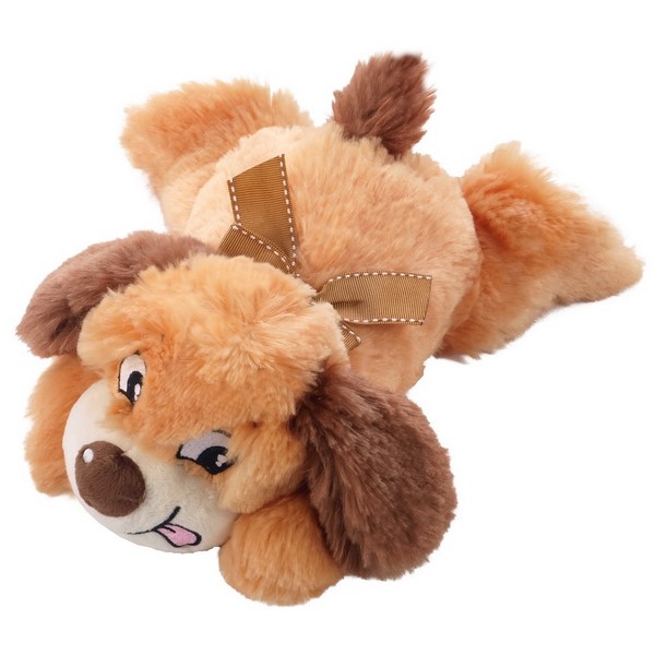 RIO to puszysty leżący psiak w kolorze brązowym. Ciemno brązowe uszka, ogonek oraz zawiązana na grzbiecie kokarda sprawiają, iż pluszak jest bardzo ładny i oryginalny. Świetnie sprawdzi się jako oryginalny prezent na każdą okazję.