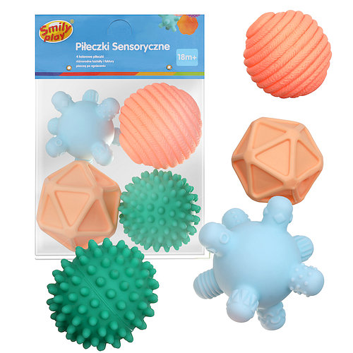 Wykorzystaj piłeczki na różne sposoby: poznawanie, zmysły: maluch bada powierzchnię piłek sensorycznych paluszkami, odkrywając wytłoczone na nich wzory. Dwie piłeczki wydają przy zgnieceniu dźwięk. Zręczność: zabawa toczącą się piłką, ćwiczenia chwytania, małej i dużej motoryki. Relaks: dzięki wypustkom możesz użyć miękkich piłeczek do masażu malucha, aby go ukoić. Kąpiel: piłeczki mogą służyć także jako zabawki kąpielowe: pozwolą umilić dziecku czynności związane z higieną.