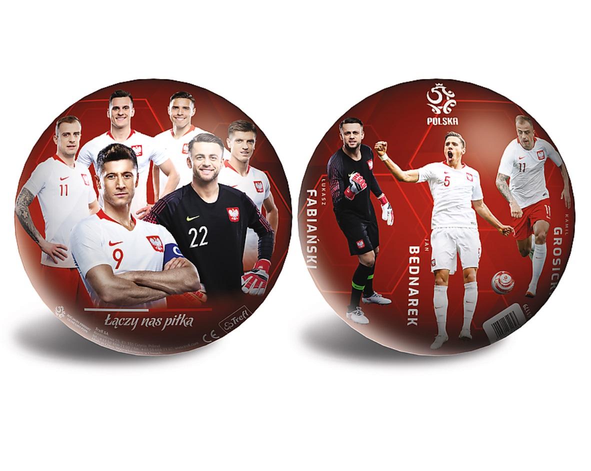 Piłka gumowa PZPN czerwona 23 cm TREFL Różne wzory, wysyłane losowo.