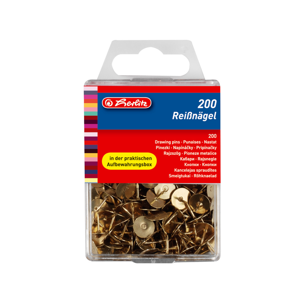 Pinezki metalowe w praktycznych plastikowych pudełkach. Każde opakowanie zawiera 200 sztuk pinezek.