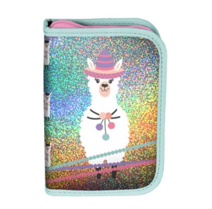 Piórnik jednokomorowy bez wyposażenia. Posiada zadrukowane, kolorowe wnętrze. Wyposażony jest w dwie klapy z uchwytami na przybory piśmiennicze.
