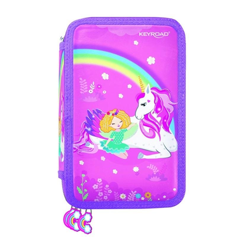 - w zestawie: 18 szt. flamastrów, 18 szt. kredek ołówkowych (w tym 3 metaliczne), ołówek jumbo HB, ołówek HB, gumka, temperówka, pióro wieczne, 4 szt. niebieskich wkładów atramentowych, 2 szt. szablonów plastikowych z literami (A-M, N-Z), linijka 15 cm, kątomierz, ekierka, nożyczki 13 cm, uchwyt na ołówek