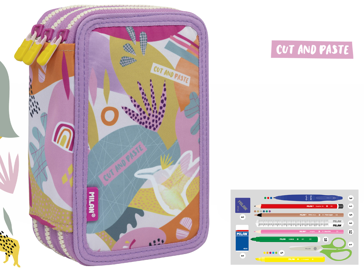 Piórnik 3 poz. z wyprawką Cut&Paste różowy MILAN